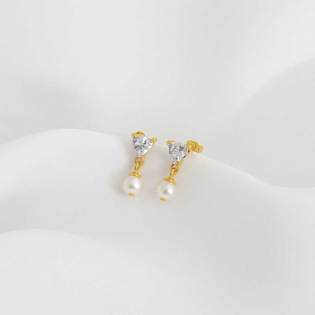 BRINCO CORAÇÃO COM PEROLA EM OURO 18K