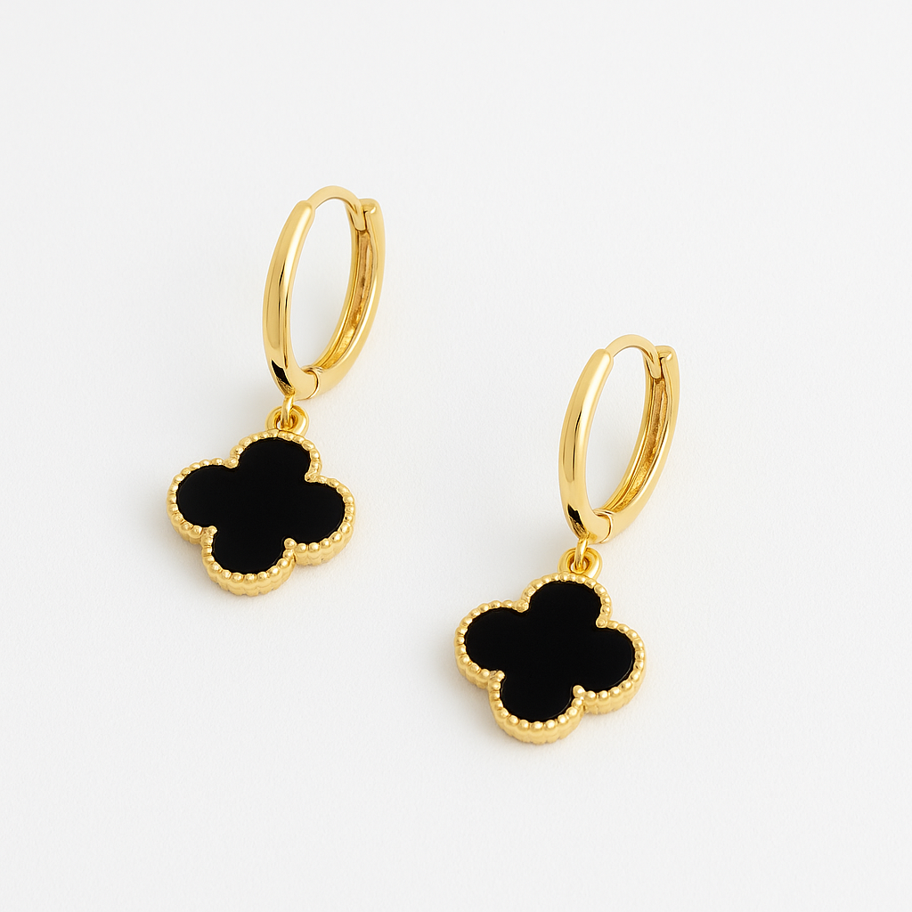 BRINCO ARTICULADO TREVO PRETO EM OURO 18K
