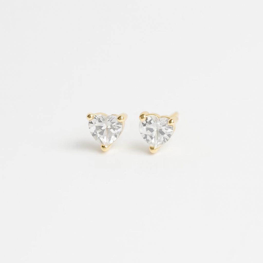 BRINCO PEQUENO CORAÇÃO COM PEDRA 8X8 EM OURO 18K